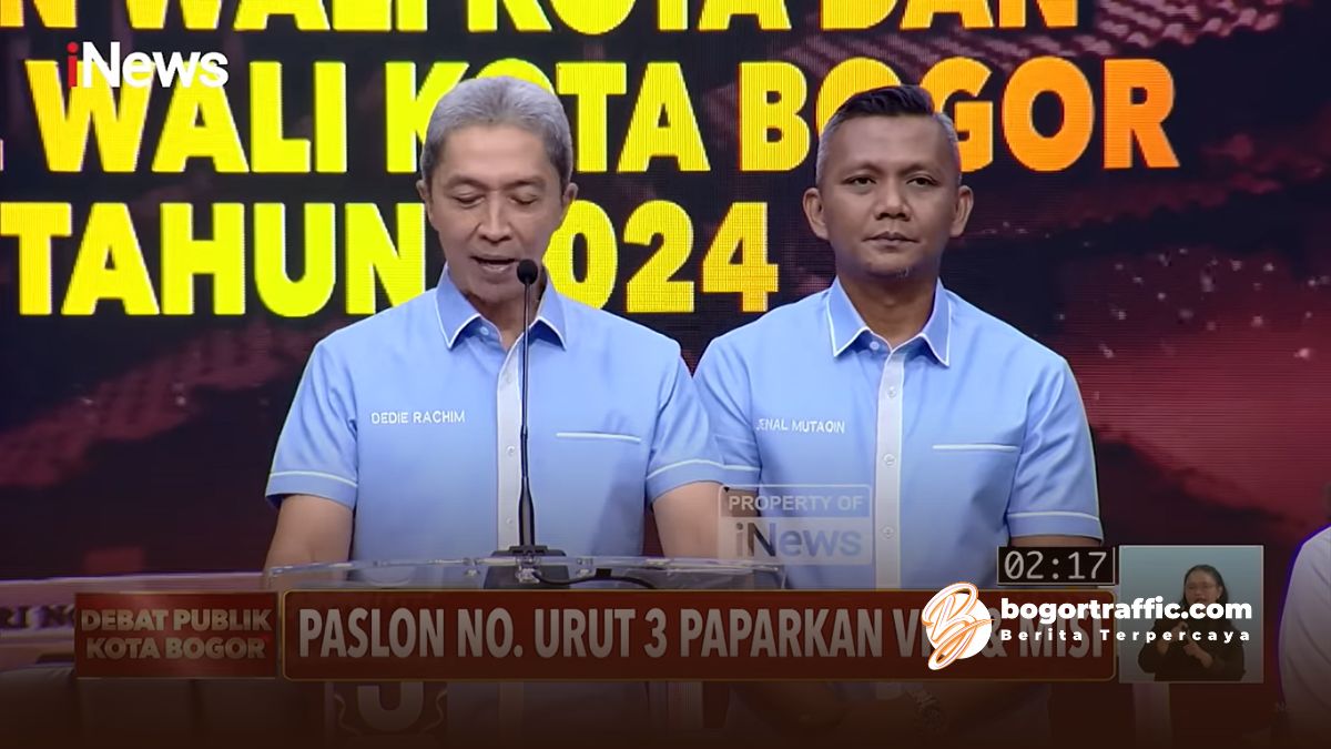 “Pengalaman kami sebagai Wakil Wali Kota Bogor dan Wakil Ketua DPRD Kota Bogor menjadi bekal kami berdua membangun visi secara terukur dan sistematis. Visi Bogor beres, Bogor maju sebagai komitmen kelanjutan yang telah berjalan, mewujudkan Bogor cerdas, sehat sejahtera, dan lancar,” ujar Dedie, sebagaimana disiarkan iNews TV.