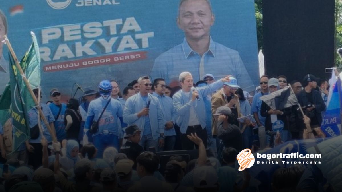 bogortraffic.com, BOGOR- Pasangan calon (Paslon) Wali Kota dan Wakil Wali Kota Bogor nomor urut 3, Dedie Rachim dan Jenal Mutaqin, menggelar pesta rakyat sebagai bagian dari kampanye akhir jelang masa tenang Pilkada 2024. Acara ini berlangsung di Lapangan Koramil, Kelurahan Kayumanis, Kecamatan Tanah Sareal, Kota Bogor, pada Rabu (20/11/2024) pagi hingga siang hari.