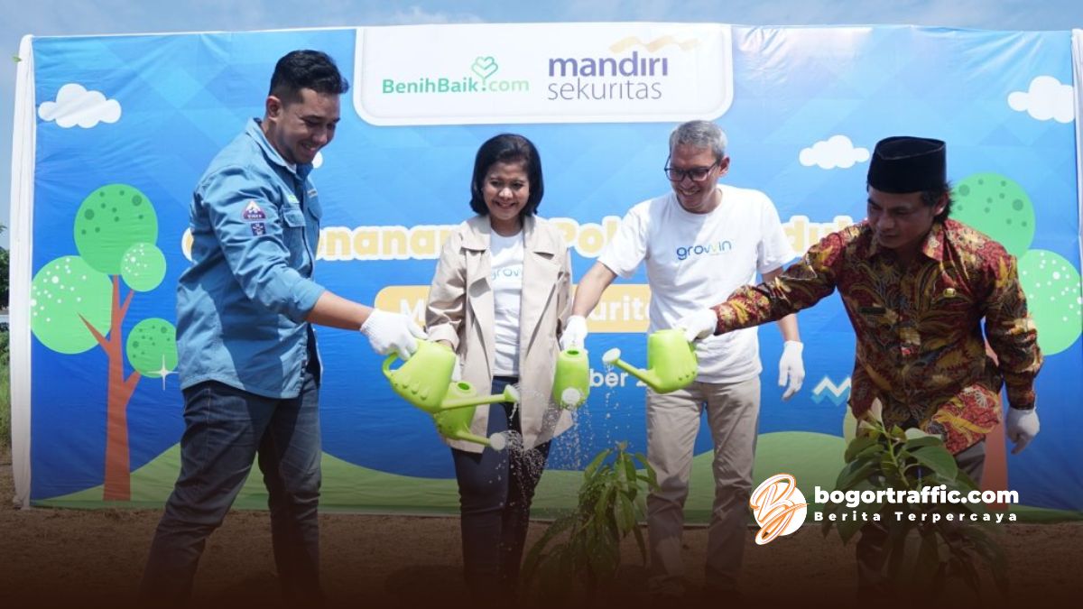bogortraffic.com, BOGOR- PT Mandiri Sekuritas bekerja sama dengan Yayasan BenihBaik melaksanakan kegiatan penanaman pohon di Desa Hambalang, Kecamatan Citeureup, Kabupaten Bogor, Jawa Barat. Kegiatan yang diikuti oleh 30 volunteer dari kedua organisasi tersebut berhasil menanam 200 pohon, termasuk jenis alpukat dan durian.