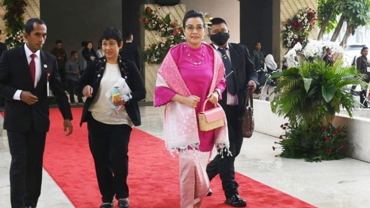 “Saya bergegas ke Senayan dengan baju merah jambu,” kata Sri Mulyani, dikutip dari akun Instagram Sri Mulyani @smindrawati, Rabu (16/8/2023).