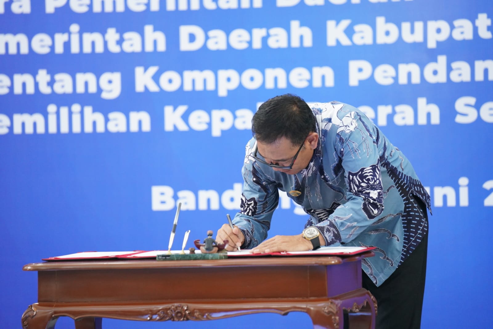 Bandung – Plt. Bupati Bogor, Iwan Setiawan menghadiri acara Penandatanganan naskah kesepakatan komponen pendanaan Pemilihan Kepala Daerah (Pilkada) serentak 2024 di Gedung Sate, Bandung. (21/6)