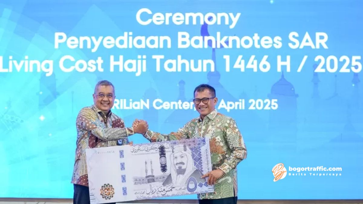 bogortraffic.com, BOGOR- Badan Pengelola Keuangan Haji (BPKH) secara resmi menyerahkan banknotes (uang tunai) dalam mata uang Saudi Arabian Riyal (SAR) sebagai bagian dari pemenuhan kebutuhan living cost bagi jemaah haji reguler tahun 1446 H/2025 M.