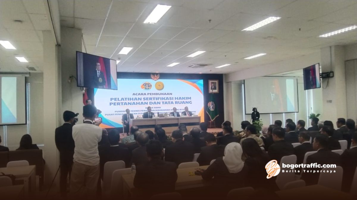 bogortraffic.com, BOGOR- Kementerian Agraria dan Tata Ruang/Badan Pertanahan Nasional (ATR/BPN) menyelenggarakan Pelatihan Sertifikasi Hakim bidang agraria, tata ruang, dan pertanahan tahun 2024. Kegiatan ini berlangsung di Gedung Pusat Pengembangan Sumber Daya Manusia ATR/BPN, Gunung Putri, Bogor, pada Rabu (2/10/2024) dan dihadiri oleh sejumlah pejabat penting, termasuk Menteri ATR/BPN Agus Harimurti Yudhoyono (AHY) dan jajaran Mahkamah Agung (MA) dan beberapa Wakil Ketua MA, serta Wakil Menteri ATR/BPN, Raja Juli Antoni.