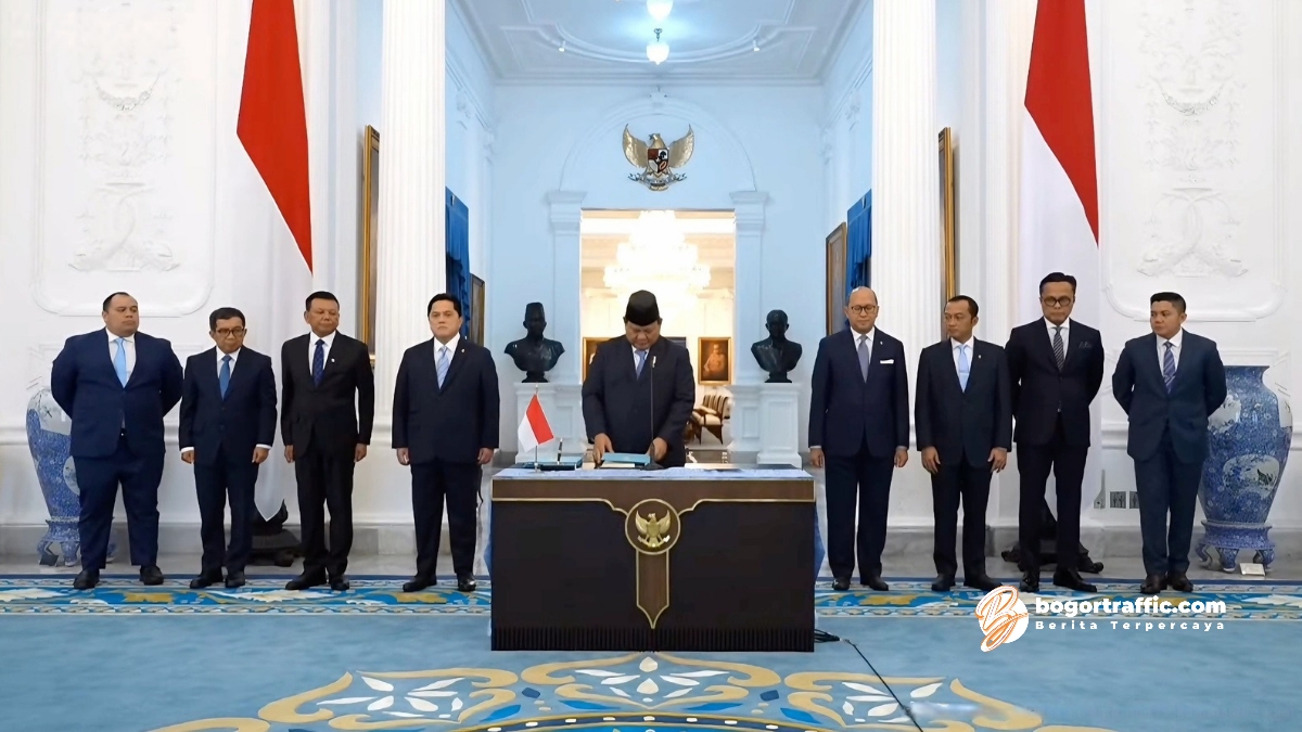 bogortraffic.com, JAKARTA — Presiden RI Prabowo Subianto menandatangani Keppres Pengangkatan Dewan Pengawas dan Badan Pelaksana dari Badan Pengelola (BP) Investasi Danantara yang diselenggarakan di Istana Negara, Jakarta, Senin (24/2).