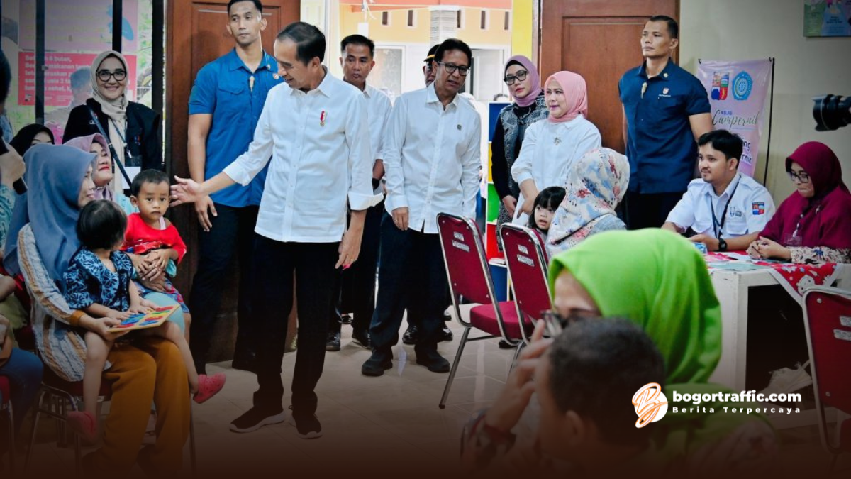 bogortraffic.com, BOGOR – Presiden RI Joko Widodo (Jokowi), didampingi Ibu Iriana, mengunjungi Posyandu Wijaya Kusuma di Kebon Pedes, Kota Bogor, Jawa Barat, pada Selasa (11/06/2024) untuk meninjau langsung pelaksanaan Gerakan Intervensi Serentak Pencegahan Stunting. Kunjungan ini merupakan bagian dari upaya pemerintah untuk mengurangi angka stunting di Indonesia melalui kegiatan yang dilakukan serentak pada bulan Juni.