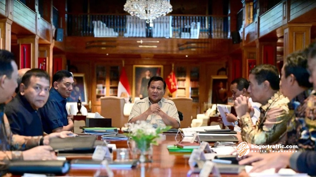 bogortraffic.com, BOGOR – Presiden Prabowo Subianto menggelar rapat terbatas (ratas) bersama sejumlah menteri Kabinet Merah Putih di kediamannya di Hambalang, Kabupaten Bogor, pada Minggu siang (16/3/2025).